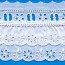 Bordo sangallo ricamato e arricciato con passanastro, composizione cotone 100%, altezza 7cm, confezione in pezze da 8 metri.