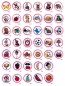 Applicazione ricamata termoadesiva, dimensioni 30 mm, quaranta simboli per personalizzare facilmente indumenti e biancheria personale.