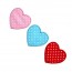 Applicazioni ricamate termoadesive, dimensioni 40x40 mm, confezione in blister trasparente, con istruzioni per l'uso, da sei pezzi. Disponibili nei colori: azzurro, rosa e rosso.