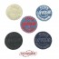 Applicazione ricamata termoadesiva tonda, dimensioni 40 mm; confezioni da cinque pezzi assortiti, in blister con istruzioni per l'uso.