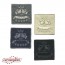 Applicazioni ricamate termoadesive quadrate, dimensioni 35x35mm; confezione da quattro pezzi assortiti, in blister trasparenti con istruzioni per l'uso.
