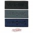 Applicazioni ricamate termoadesive, dimensioni 80x30mm; confezionate in blister trasparente con istruzioni per l'uso. Disponibili colore nero, grigio e blu.
