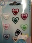 Applicazioni ricamate cuoricini, misura 18x18mm. Confezione in blister da dieci pezzi, colori assortiti, con istruzioni per l'uso.{13}{10}{13}{10}