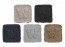 Applicazione ricamate termoadesive, dimensioni 50x50mm, confezione in blister trasparenti da cinque pezzi assortiti (colore nero, blu, beige, grigio e marrone) con istruzioni per l'uso