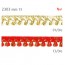 Frangia pon-pon poliestere 50% poliammide 50%, h. 12mm, confezionata in pezze da 20 metri. Disponibile 13-rosso/oro, 01-bianco/oro. Made in Italy{13}{10}