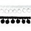 Frangia pon-pon poliammide 100%, dimesnioni 10mm, altezza 30mm, confezionata in scatola trasparente da 10 metri. Disponibile pronta in magazzino in bianco e nero.
