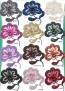 Applicazioni ricamate, fiore con paillettes e perle, dimensioni 60x70 mm; confezione da due pezzi, in buste trasparenti con istruzioni per l'uso. Colori disponibili: nero, marrone, lilla, rosso, rame, blu, argento, verde, fucsia, oro, rosa e bianco.