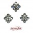 Applicazione termoadesiva con strass, dimensioni 28x28 mm. Confezione in busta da tre pezzi.