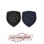 Applicazione ricamata su tessuto termoadesivo, dimensione 37x42mm, confezione da quattro pezzi assortiti (blu e nero), in blister trasparente.