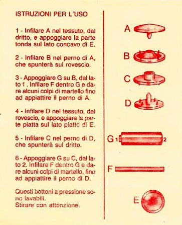 Bottoni a pressione di materiale plastico confezione in bustine self service da sei pezzi, i punzoni per chiuderli sono a parte.