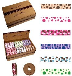 Assortimento di nastri di cotone (fantasie a pois): 24 rotoli da tre metri. Disponibili in un comodo box di cartone.{13}{10}