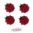 Applicazioni ricamate termoadesive coccinella. Confezionate in blister da quattro pezzi, con istruzioni per l'uso.